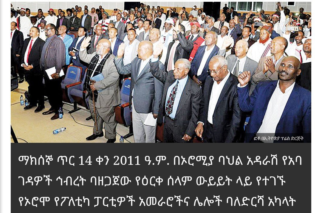 ማክሰኞ ጥር 14 ቀን 2011 ዓ.ም. በአዲስ አበባ ከተማ የኦሮሚያ ባህል አዳራሽ በተካሄደውና በኦሮሚያ ክልል የሚንቀሳቀሱ የፖለቲካ ፓርቲዎች በተሳተፉበት ውይይት፣ የኦሮሞ አባ ገዳዎችና ሀደ ሲቄዎች በሁለቱ ድርጅቶች መካከል ዕርቅ ካልወረዱ እንደማይቀመጡና ወደ ቤታቸውም እንደማይመለሱ አስታውቀው ነበር፡፡ የሁለቱ ተቀናቃኝ ፓርቲዎች ውዝግብ በተለይ በምዕራብ ኦሮሚያ ወለጋ ውስጥ ግጭት መቀስቀሱና የሰዎችን ሕይወት ለአደጋ ማጋለጡ፣ የክልሉን ሰላምና ፀጥታ ችግር ውስጥ መክተቱ ይታወሳል፡፡