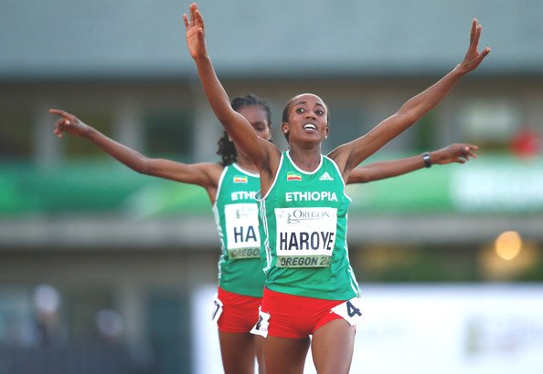 Alemitu Heroye and Alemitu Hawi have a long way to go to achieve that sort of status, but their dominance in going 1-2 in Wednesday night’s women’s 5,000 final at the 2014 World Junior Championships in Eugene, Ore., immediately brought to mind Dibaba and Defar. Heroye and Hawi broke away halfway through the race and would run together until 25 meters to go, when Heroye finally gained a gap on Hawi and pulled away to win in 15:10.08. Hawi took silver in 15:10.46, while Kenya’s Agnes Jebet Tirop — who was almost half a lap behind the leaders by the end — took the bronze in 15:43.12.