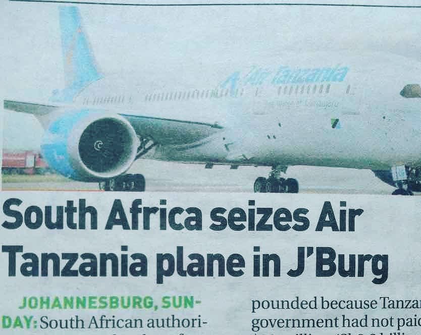 ንብረትነቱ የታንዛኒያ መንግስት የሆነው የታንዛንያ አየርመንገድ አውሮፕላን በደቡብ አፍሪካ ተይዞ እንደነበር ታውቋል። ይሄው አውሮፕላን ኤርባስ 220-300 አርብ ዕለት ከጆሃንስበርግ ወደ ዳሬሰላም በረራ ለማድረግ በተዘጋጀበት ወቅት የደቡብ አፍሪካ የጸጥታ ሃይሎች አውሮፕላኑ እንዳይንቀሳቀስ ማድረጋቸው ታውቋል። ምክንያቱ ደግሞ የታንዛኒያ መንግስት ከአንድ ደቡብ አፍሪካዊ ገበሬ ላይ መሬት ነጥቆ ተገቢውን ካሳ ባላመክፈሉ ምክንያት የተከሰተ ነበር። የደቡብ አፍሪካ ፍርድ ቤት ለገበሬው የታንዛኒያ መንግስት 33ሚሊዮን ዶላር ካሳ እንዲከፍል ቢፈርድበትም እምቢ ብሎ በመቆየቱ ፍርድቤቱ ባለዕዳው የታንዛኒያ መንግስት ንብረት የሆነው አውሮፕላን እንዲያዝ ወስኗል። የታንዛኒያ መንግስት የተያዘበትን አውሮፕላን አስመልክቶ ከደቡብ አፍሪካ ጋር ለመመካከር ቃል አቀባዩን ወደ ደቡብ አፍሪካ መላኩን ገልጿል። እዳ ተገኘ ተብሎ ዝም ብሎ እጅ መስደድ መዘዝ ያመጣል። ከሶስት ዓመት በፊት የኢትዮጵያ ዕዳ ጫና መፍትሄ ካልተገኘለት የኢትዮጵያ አየር መንገድ አውሮፕላኖች ባለእዳዎቹ በያረፉበት እየያዙ ሊወስዷቸው ይችላሉ። ከዚህ በፊት የአርጀንቲና አበዳሪዎች በአለም አቀፍ ፍርድ ቤት የአርጀንቲና መንግስት ከሰው የአርጀንቲናን መንግስት ንብረት እየይዙ ያበደሩትን ገንዘብ እየሽጡ እንዲወስዱ በፈረደላቸው መሰረት ይህንኑ አድርገዋል። የአርጀቲና መንግስት የንግድ መርከብ ምዕራብ አፍሪካ ጋና ይዘው የመርከቡን ሰራተኞች እና ጭነት አራግፈው መርከቡን ወስደዋል። የዓለም አቀፉ ፍርድ ቤት ውሳኔን የጋና መንግስት አስፈጽሟል። የአርጀንቲና አውሮፕላን በርሊን እንዳረፈም የፍርድ ቤት ውሳኔያቸውን ለጀርመን መንግስት አቅርበው አውሮፕላኑ በቁጥጥር ስር እኒውል ማድረግ ችለው ነበር። ይሁን እንጅ አውሮፕላኑ የሃገሪቱ ፕሬዝዳንት መንቀሳቀሻ የነበረ በመሆኑ እና በቬና ስምምነት መሰረት ፕሬዝዳንቱ ባለው የዲፕሎማቲክ መብት አውሮፕላኑ ለጥቂት ከአበዳሪዎቹ እጅ ማምለጥ ችሏል።