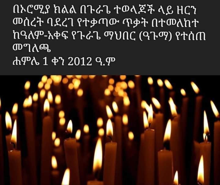 እንደ ኦሮሞ ህዝብና እንደ መላው የኢትዮጵያ ህዝብ የአርቲስት ሀጫሉ ሞት ሀዘንን በቅጡ ሳንጀምር በክልሉ በሕገ ወጥና በተራቀቀ መልኩ ከነሱ ዘር ውጪ ያለውን ማሕበረሰብ ለማጥፋት በወጠኑና መላውን ኦሮሞ በማወይክሉ ጥቂት ቡድኖች አመራርነት በተፈጠረው ሁከትና ብጥብጥ በኦሮሚያ ክልል ቡል ቡላ፣ ዝዋይ፣ አሰበ ተፈሪ (ጭሮ)፣ ሀረር፣ በአርሲ/ነገሌ፣ ባሌ ጎባ፣ ሻሸመኔና ሌሎችም አካባቢዎች የጉራጌ ተወላጆችና ሌሎች ብሔረሰቦችም ላይ የተፈጸመው ዘርን መሰረት ያደረገ አሰቃቂ ግድያ፣ አካል ማጉደል፣ የንብረት ዘረፋና ውድመት ታሪክ ይቅር የማይለው በደልና ወንጀል በመሆኑ በወገኖቻችን ላይ የተቃጣው ጥቃት በጽኑ እናወግዛለን።