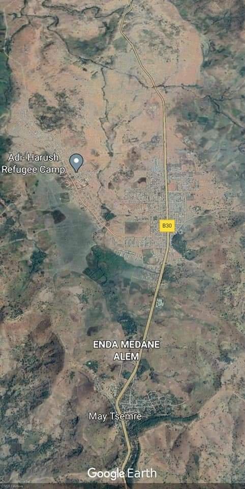 ለዚህ እቅድ ዋናው አንዱ ግብአት ከዚሁ ተከዜ አቅራቢያ ዋሻ የመሸገውን የወንበዴ አመራር ለማስወጣት #የኤርትራ #ስደተኞችን መጠቀም አንዱ የተዘጋጁበት መረብ ነበር ማለት ነው። ከተያያዘው ምስል እንደምታዩት ማይፀምሪ ላይ የኤርትራ ስደተኞች ትልቅ ካምፕ አለ። እነዚህ ምእራባዊያን ሰላዮች ሌላው ያዘጋጁት በአለም አቀፍ ድርጅቶች የሰብአዊ እርዳታ ልኡካን ስም የጁንታውን አመራሮች ሸፋፍኖ ማውጣት ነበር። የኢትዮጵያ መንግስት ዘግይቶም ቢሆን ጉዳዩ የገባው ይመስላል። ምመኪኖቹን በጥይት መትቶ እስከ ማስቆም እርምጃ ተወስዷል። በእኛ ዘገባዎች ግን ወደ ጦርነት ቀጠናው ከላይ የጠቀስናቸው ሃይሎች እንዳይገቡ ቀድመን መልእክት አስተላልፈን ነበር።