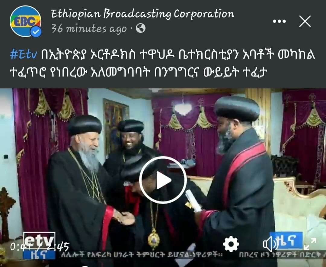 “…በአባቶች መካከል የተፈጠረ አለመግባባት ብሎ ዜና የለም። ይሄ ዜና አይሆንም። በግል የተጣላ እኮ የለም። በጥቂት የኦሮሞ ወሃቢይ እስላሞችና በኦሮሞና በደቡብ የጴንጤ ባለሃብቶች የገንዘብ ድጋፍ በኦነግና በኦሮሞ ብልፅግና ፅንፈኞች ተታለው አፈንግጠው በወጡ አፈንጋጮች ላይ ተወስዶ በነበረው እርምጃ፣ ተወጋዦቹ ማሩን፣ ይቀርም በሉን ብለው ደብዳቤ ጽፈው እግር ላይ ወድቀው ነው ተመለሱ መባል ያለበት። ወዴት ወዴት ነው ነገሩ?