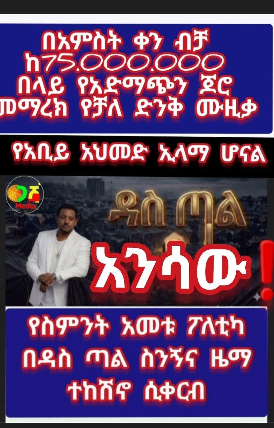 📌 በአምስት ቀን ብቻ ከ 75.000.000 አድማጭ ጆሮን መማረክ የቻለ በታሪክ በኢትዮጲያ ብቻ ሳይሆን በድፍን አፍሪካ ብቸኛ እና የመጀመሪያ የሆነው #ኢቶሪካአልባም