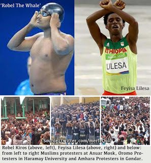 Ethiopia’s last participation in Rio was in men’s marathon race on which Feyisa Lilesa gave the world another but different experience than ‘Robel the whale’ had given. A husband and father for two, Feyisa Lilesa, has become silver medalist in Rio Marathon Men Race. Feyisa, upon crossing the finishing line of the race (and later when he sat for press conference), has displayed a political protest by crossing his arms up in a symbolic way Ethiopian political protesters use to show that they are not free.