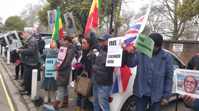 On 27 Friday 2017, Ealing Amnesty Group held a successful vigil in front of 17th Princess Gate, London, from where the diplomatic mission of the jailers of Eskinder Nega currently operate in Britain.