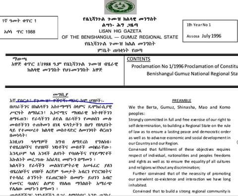 ይህን የያዘውን የቤኒሻንጉል ክልል ሕገ መንግሥት ክፍል በፎቶው ላይ ይመልከቱ፡፡